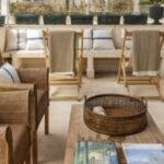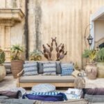 The terrace is on the same level as the church’s belltower – indeed the three windows of the outdoor dining area look directly down on the nave of the neoclassical church, decorated with delicate stuccoes. Large, comfortable sofas, pouffes and coffee tables make the terrace the ideal spot for a sunset aperitivo — the limestone of Noto is famous for the way it seems to glow and change in the colours of the setting sun and sky.