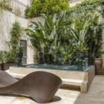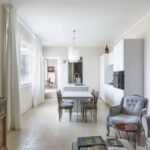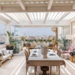 The apartment is located on the top floor of an elegant palazzo, without an elevator.. It consists of a large open-plan living room with kitchen, dining area and TV/conversation zone, opening onto the larger of the apartment’s two terraces – which feels like a seamless extension of the living space. The terrace has a ‘bioclimatic’ pergola which allows guests to make the most of the outdoor space, whatever the weather.