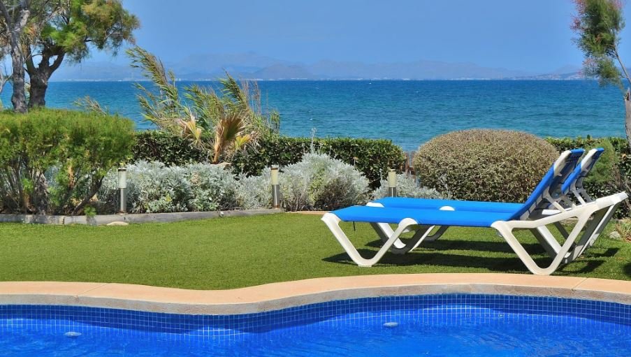 Located literally opposite the picturesque rocky beach, Villa Embat Colonia de Sant Pere offers an idyllic setting for those dreaming of a beach vacation in Mallorca. The luxurious 120-meter square space can easily accommodate up to six people. The unparalleled location of this villa means that you can stroll by the ocean’s edge whenever the mood strikes. In addition, the lively city center is just 200 meters away.