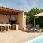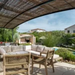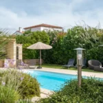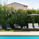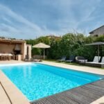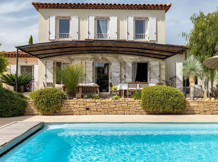 5-room house 130 m2 on 2 levels. Comfortable and beautiful furnishings: large living/dining room with satellite TV (flat screen), stereo unit and DVD. Exit to the terrace, to the swimming pool. 1 room with 1 double bed (160 cm, length 200 cm), TV (flat screen). Exit to the terrace. Open kitchen (oven, dishwasher, 3 induction hotplates, microwave, freezer, electric coffee maker). Exit to the terrace. Shower, separate toilet. Upper floor: 1 room with 1 double bed (140 cm, length 190 cm). 1 room with 1 double bed (140 cm, length 200 cm). 1 room with 2 beds (90 cm, length 200 cm). Bathroom, separate WC, double sink. Electric heating, air conditioning. Large terrace 80 m2, south-east facing position, large garden, south facing position, lawn. Terrace furniture, barbecue. Available: washing machine, iron, baby bed for up to 2 years. Internet (WIFI connection, free). Parking space.