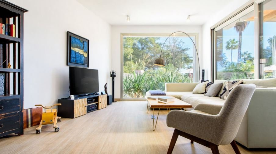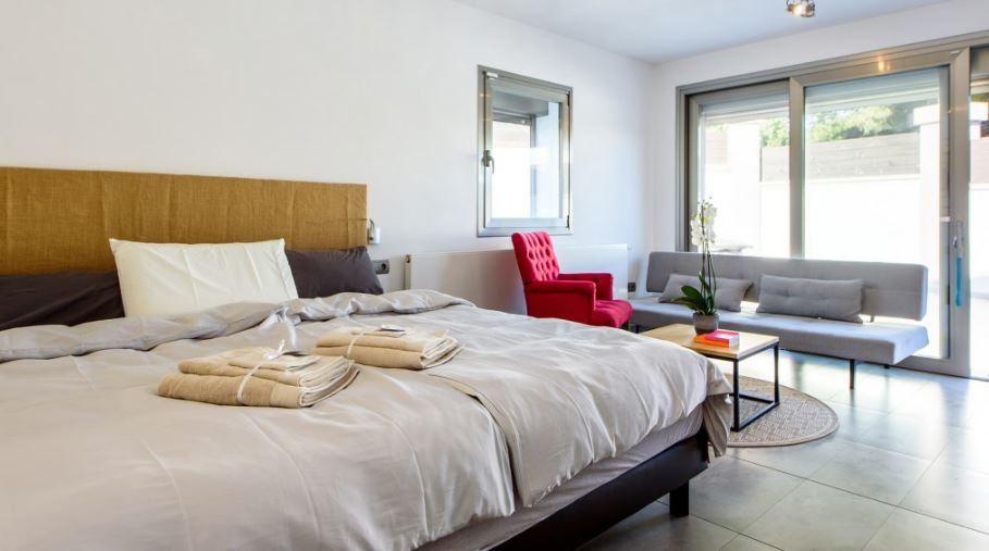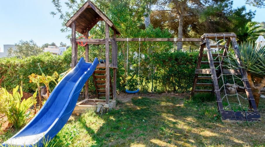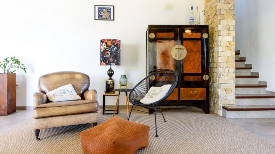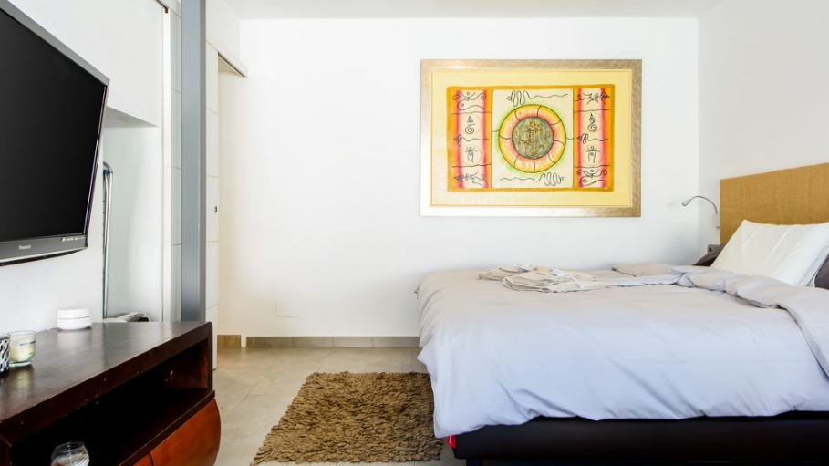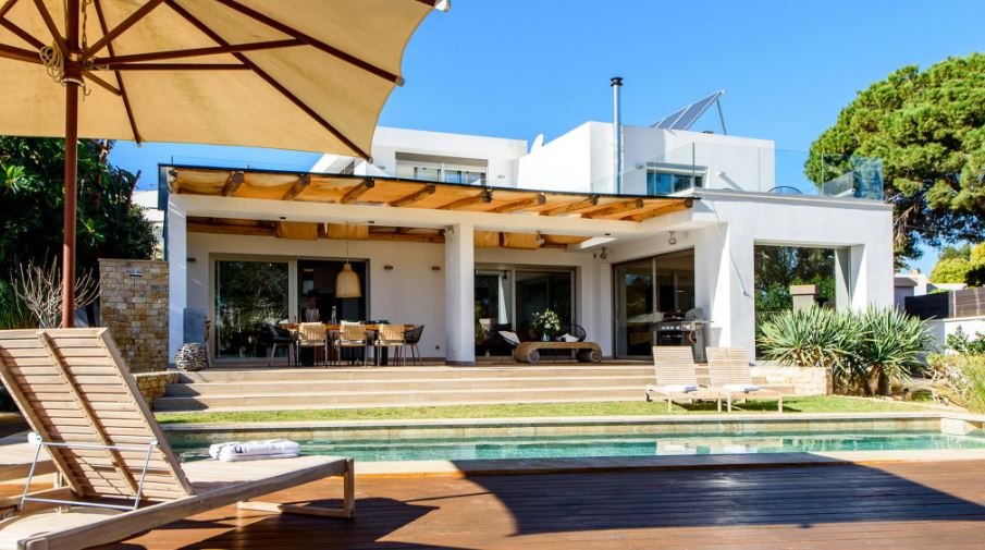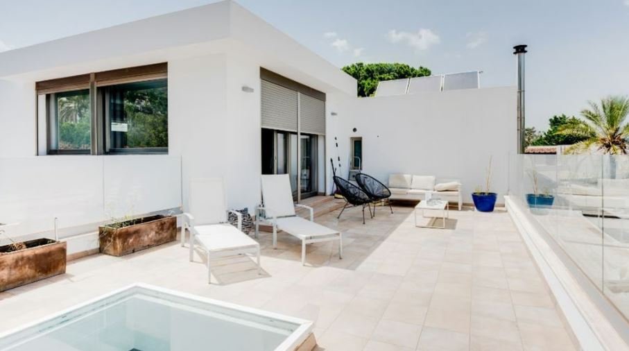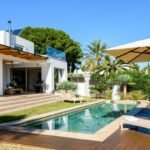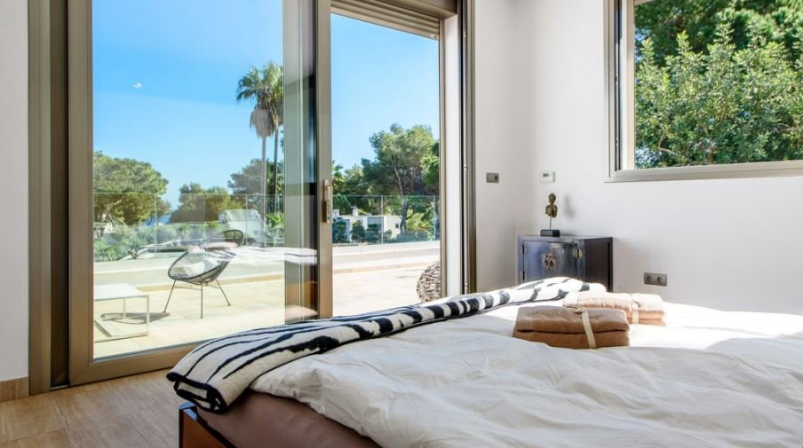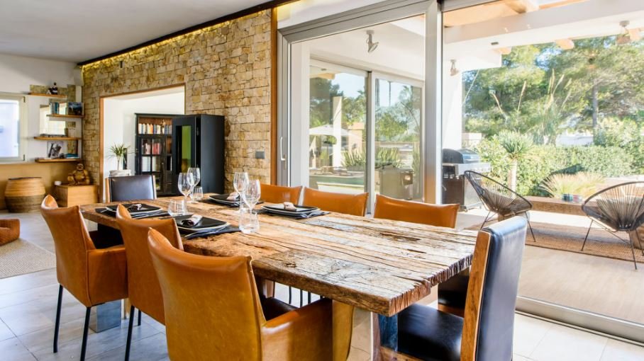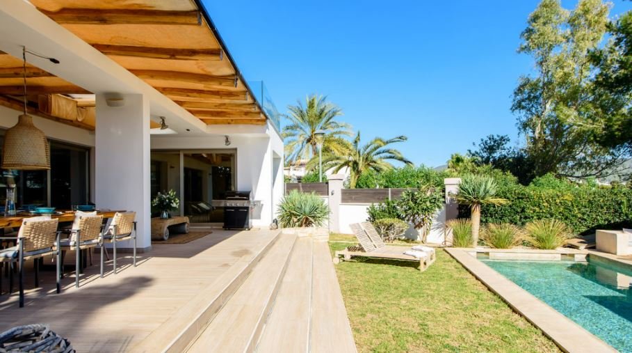 Wonderfully elegant, chic, modern and luxurious… the villa is certainly one of Ibiza’s most beautiful rentals. It’s a haven of greenery, where you can enjoy your Mediterranean vacation with family or friends in complete privacy. This 4-bedroom villa for rent is located in the small village of Siësta, east of Ibiza, just across the cove from the seaside resort of Santa Eulària des Riu. It’s a green, peaceful neighborhood with many large trees. The nearest beach is just a 5-minute walk away. Enjoy the relaxed atmosphere of the village, the warm island sun, the rest you deserve and return home completely refreshed. You’ll find a marina and numerous restaurants nearby.