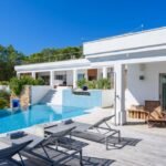 Here, you can relax in total privacy. The large exterior terrace offers shaded seating and dining spaces, as well as a fully-equipped summer kitchen. There’s a further shaded socialising space on a wooden terrace built under fragrant pine trees.