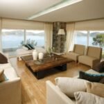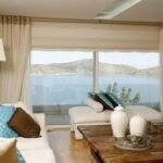 The Villa is a luxurious residence surrounded by the unspoiled Cretan countryside with direct and unobstructed panoramic views of Elounda Bay, the village of Elounda, and the historical island of Spinalonga. Its architectural design blends in perfectly with the surrounding landscapes. Both, outdoors and indoors, the locally quarried gray stone of the prefecture of Lassithi compliments the structural lines. In combination with the earthy colors of wooden floors and furniture, it adds a strong tone of warm luxury to the building. The villa comprises three (3) levels, spread over a total of 700sqm, perched on a sprawling 4000sqm private property, situated on the outskirts of Elounda on the slopes of Mount Mavrikianos.