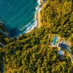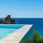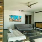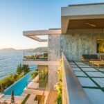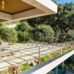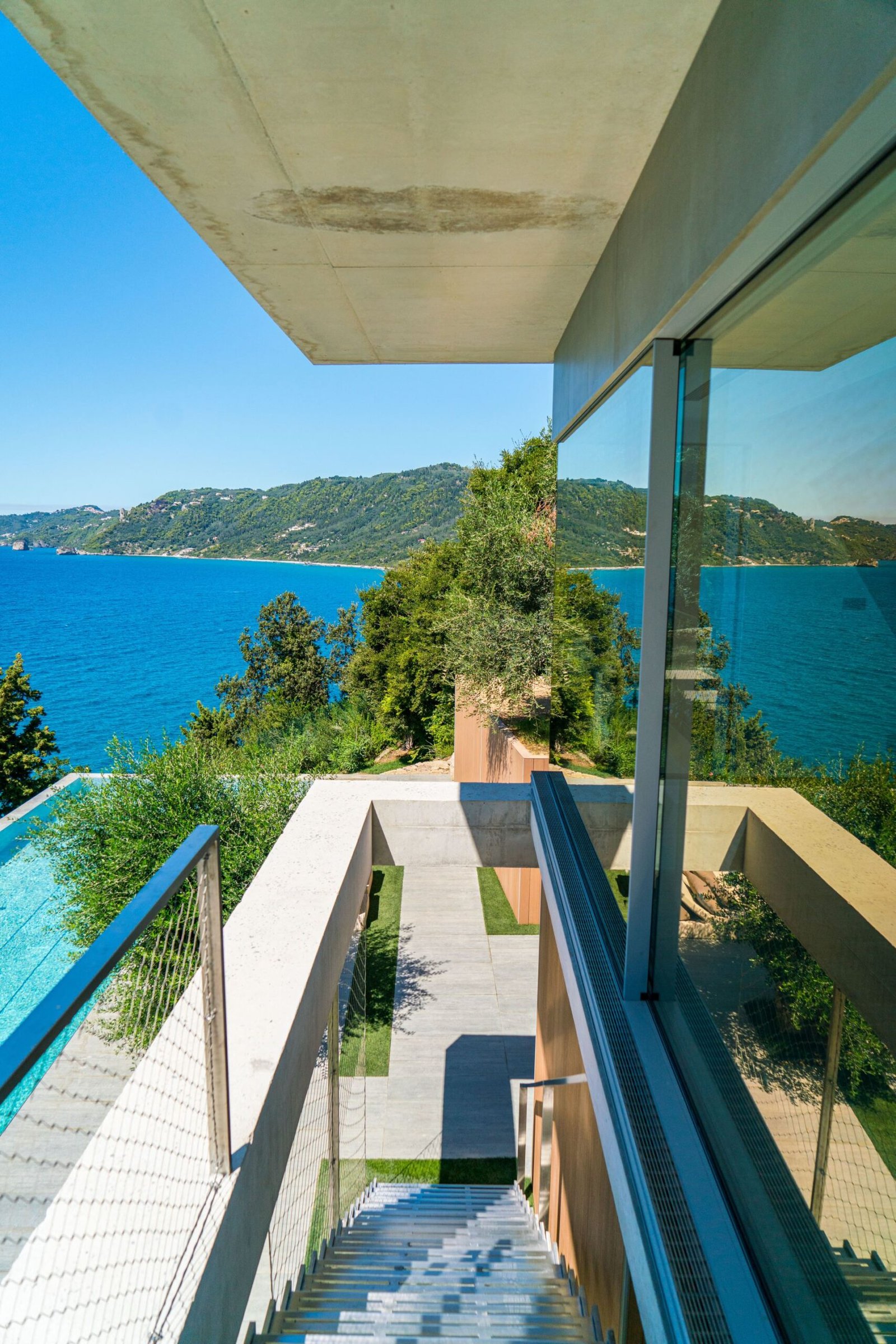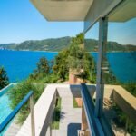On the living floor level you are welcomed by a large living room with big fireplace. Going further you will find three bedrooms with three private bathrooms for each room. Big sliding windows with minimal frame and no visible frame on the floor opens all rooms to the spectacular view of Ionian sea and unforgettable sunsets.
