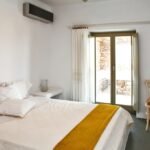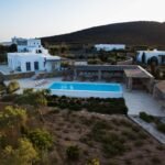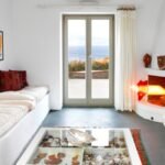 Once you enter the main gate you find yourself walking amidst cypresses and olive trees, colourful wildflowers and lush shrubs, seduced by the scent of aromatic herbs. The villas are surrounded by uncovered stone fences that enclose flowerbeds creating a blissfully serene atmosphere. The tranquillity of the villa will invite you to leave your worries behind and relax under the Greek sunshine.