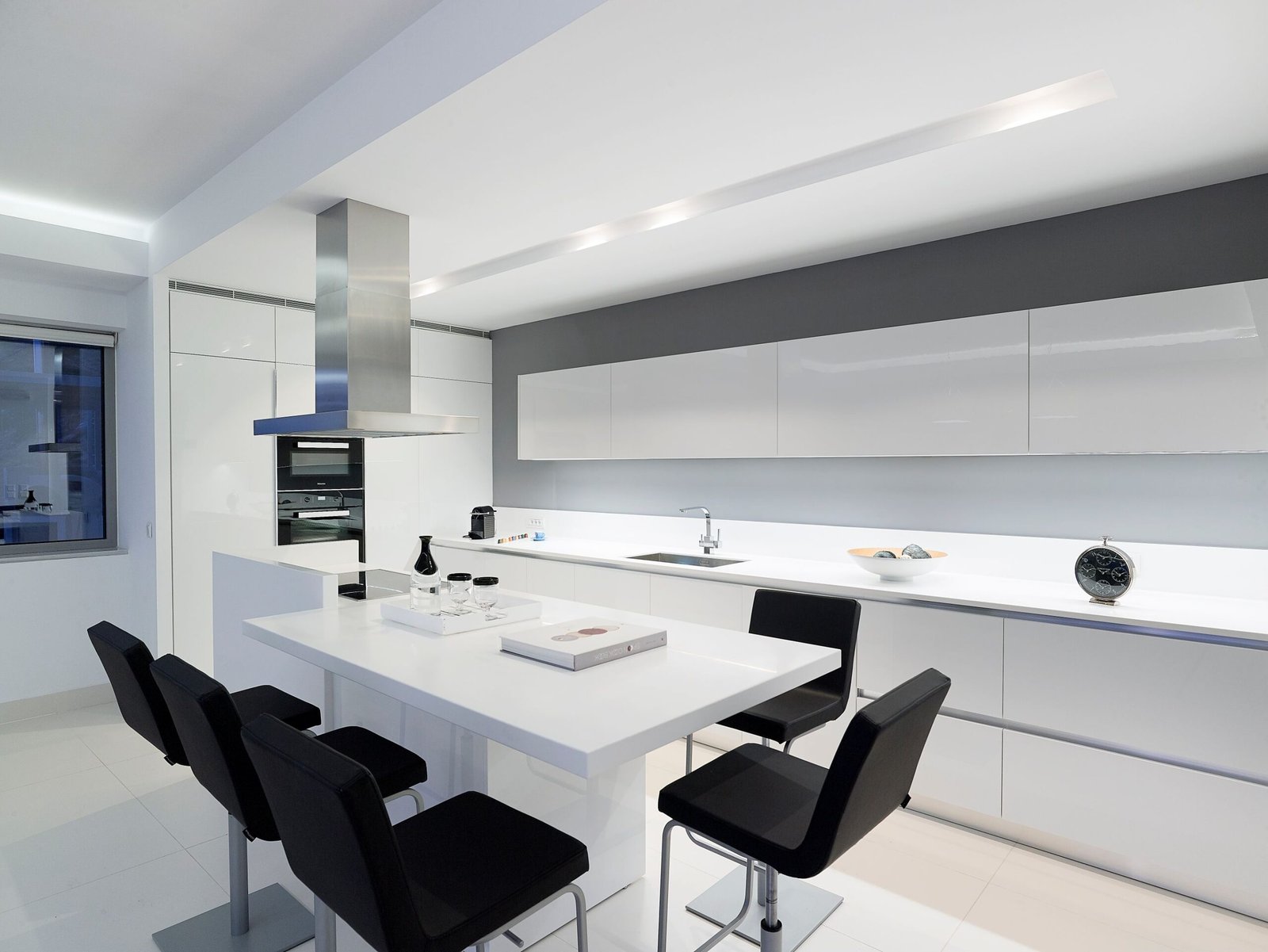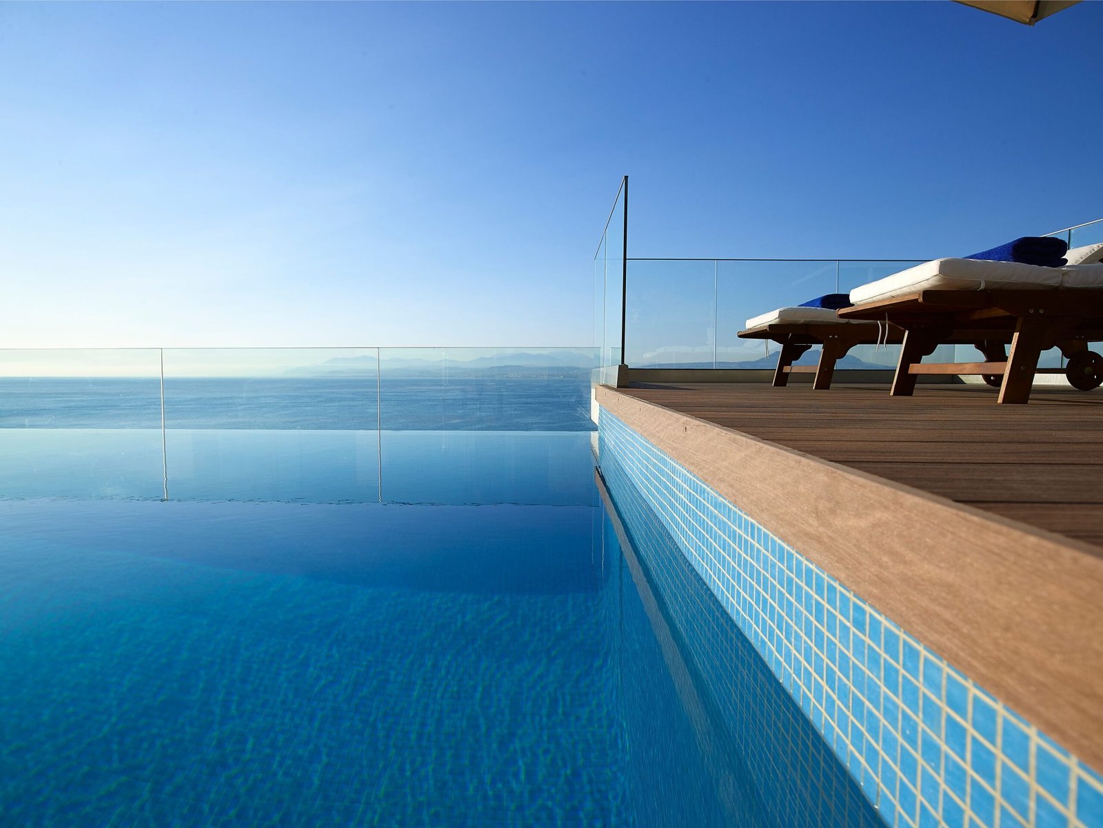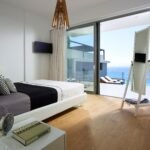 Every bedroom has its own specious en-suite bathroom with shower, satellite flat screen TV, air conditioning, build in wardrobes, working space, a side table with a lamp and a floor to ceiling balcony doors, from which, except of one bedroom, you can access a wrap-around balcony with breathtaking sea view. Two bedrooms open to a direct sea view and one to a mountain sea view. Two bedrooms out of four has got a king size bed that can be also separated into two twin beds