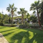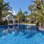 The gardens are also home to a large outdoor swimming pool and jacuzzi, surrounded by tall palms and with beautiful views along the valley to the Mediterranean Sea sparkling in the distance.