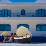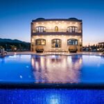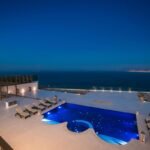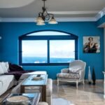 This Villa sits atop a dramatic cliff that makes it seem like the dividing line between the sea and sky. Shining bright white for all to see, it stands against the bold blue seas in glorious contrast that immerses our guests in the true Greek Island experience. A Villa was designed to reflect the architecture found in the Caldera, where classic white buildings and blue-domed roofs reflect the bright Greek sun. Here we pay homage to the great architecture that is renowned throughout the world.