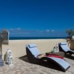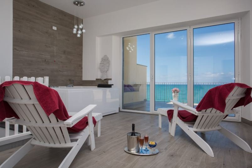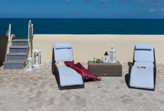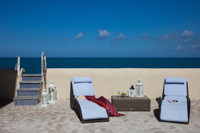The villa is built on thee levels. On the ground florr there are two double bedrooms with ensuite bathrooms, the living area, dining area and a well-equipped and comfortably-sized kitchen. All the rooms open onto a furnished terrace – which for most of the year is the true focus of life in the house – with a long dining table of Caltagirone tiles, and little areas arranged for sunbathing, chatting or enjoying a pre-dinner drink as you watch the sun set. In traditional Mediterranean-Arab style there is even a fountain – the sound of running water is amazingly refreshing on a torrid Sicilian afternoon! From here you can walk directly onto the beach.